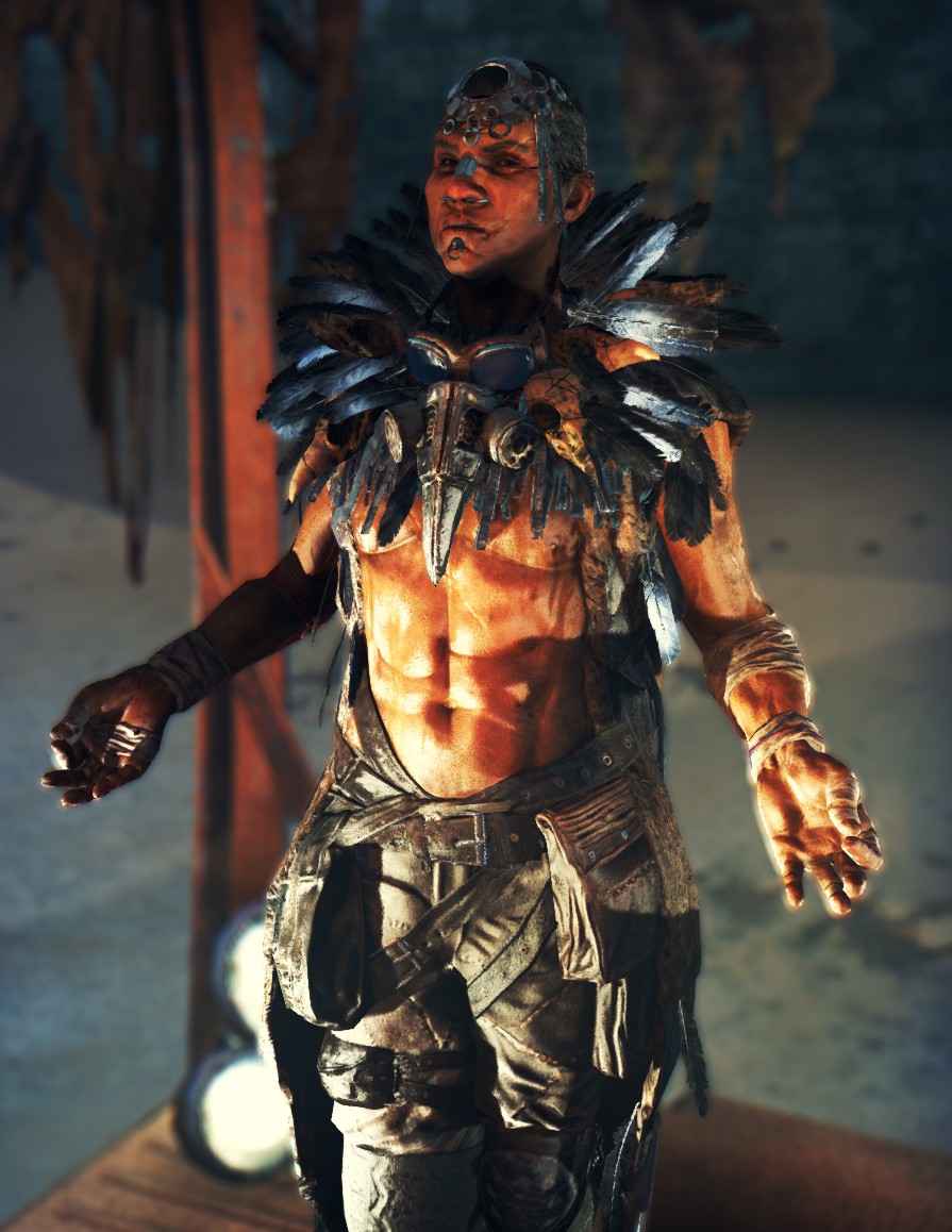 Crow Dazzle is the proprietor for the Death Races in The Wasteland. He stays under Gastown and the Citadel's radar and uses stolen oil for his races. He was voiced by David de Latour in the 2015 Mad Max video game.