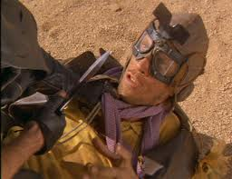 The Captain begged Max to stick together, insisting that they made a great team. Max, however, declined his offer. After Max left the compound, his bargain completed, the Gyro Captain saw the smoke from his car crash, and went to rescue the severely injured Max, bringing him back to the compound.