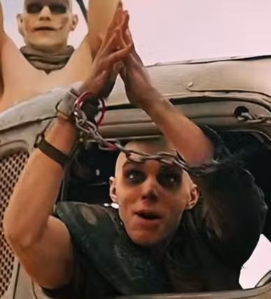 The War boys are indoctrinated into a death cult dedicated to the worship of a living god - Immortan Joe. Their highest aspiration being a glorious death in battle so that they might one day ride forever beside Joe in Valhalla. When a War Boy senses this moment in Valhalla approaching, he will "chrome" himself and ride willingly to his death, taking as many enemies and vehicles with him as he can. A war boy's station is represented by his position on a vehicle when riding into battle. This ranges from clinging tentatively to the hood of the car, feeding "guzzolene" into the hood scoops to provide extra horsepower, all the way up to manning the on-board weaponry and the pinnacle, the much coveted drivers seat, like Immortan Joe himself.